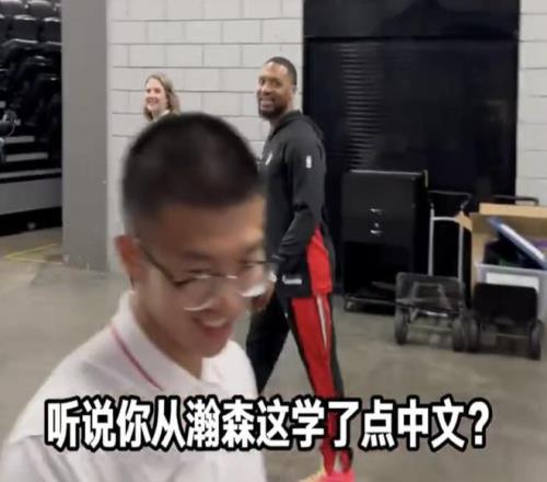 在第二场季前赛开始前,阿夫迪亚来到更衣室的时候,直接飚了一句中文,可惜当时杨瀚森并没有在现场。之后利拉德这位老大哥听到之后,主动用中文来进行回答。他们两个人就这样隔空用中文直接交流了起来。虽然说他们目前学到的中文词汇还不多,但是从这个细节我们可以感受到,利拉德两位老大哥愿意为了杨瀚森主动学习中文,这一点是非常了不起的。