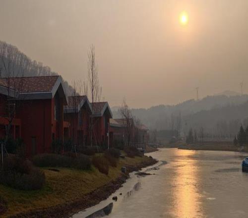 11月24日傍晚,夕阳映照着通化望春山温泉度假区别墅群。 澎湃新闻记者 王洛伊 图