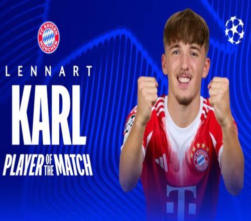 凭借本场比赛的破门,卡尔改写了欧冠71年历史纪录,就是以17岁290天的年纪,成为了欧冠历史上连续3场比赛进球最年轻的球员,这一点就连亚马尔都没有做到过。本赛季至今,卡尔代表拜仁出场19次,已经贡献5个进球和2次助攻。
